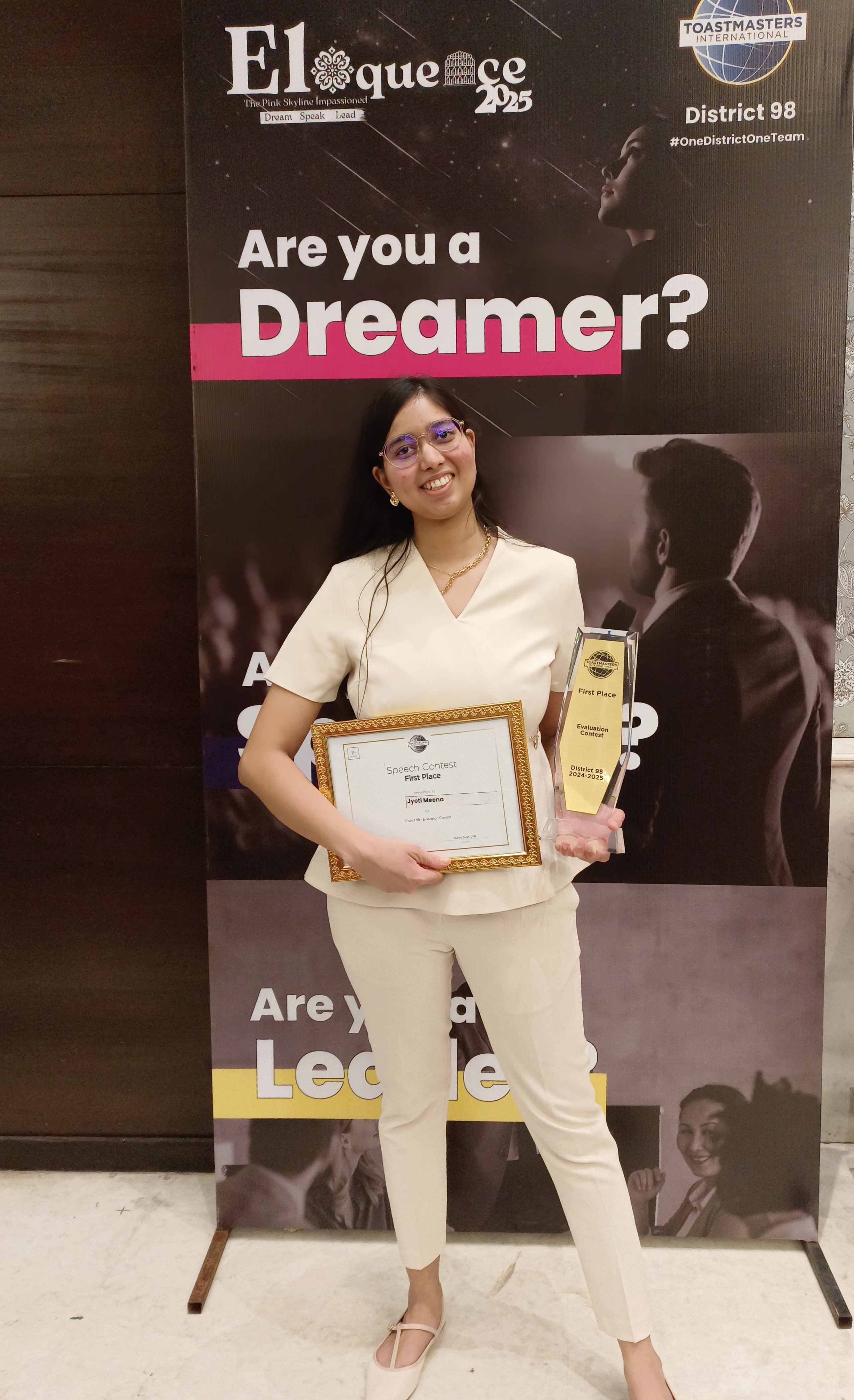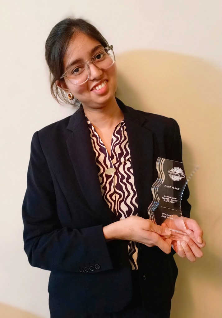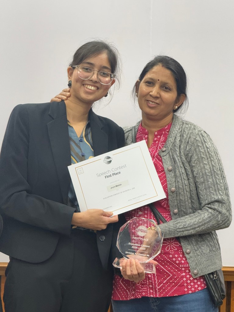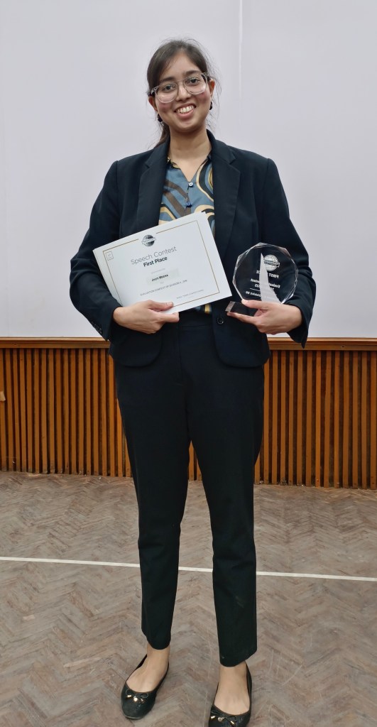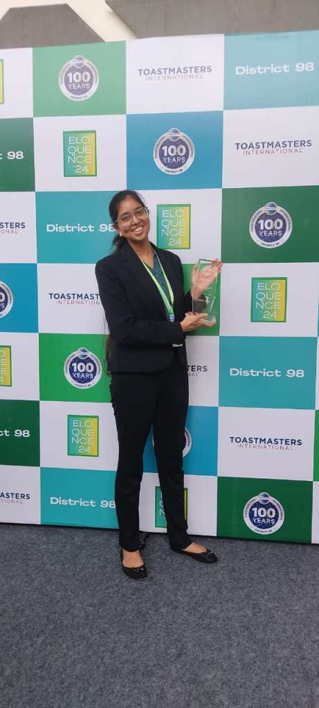 Crowned the “Best Public Speaking Trainer of 2024“, Jyoti has not only triumphed in numerous national and international speech contests but also taken center stage as a host, trainer, leader and keynote speaker at prestigious events. She proudly holds the titles of District Champion in the Evaluation Speech Contest 2023-24 and Division Champion in the International Speech Contest 2023-24.
